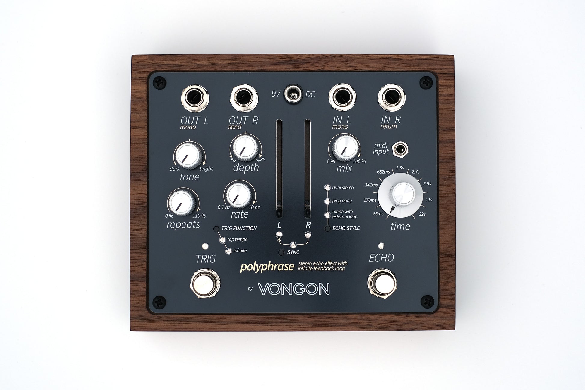 POLYPHRASE is a stereo echo and looping device inspired by early proto-digital delays of the 1970’s like the Lexicon Prime Time. As sophisticated as it is easy-to-use, Polyphrase is capable of everything from rich, dubby rhythmic repeats, to metallic resonant flanges. It is unique in being able to generate loops as long as 22 seconds, opening up a new palette of sonic possibilities for the avant-garde, ambient, or adventurous musician.